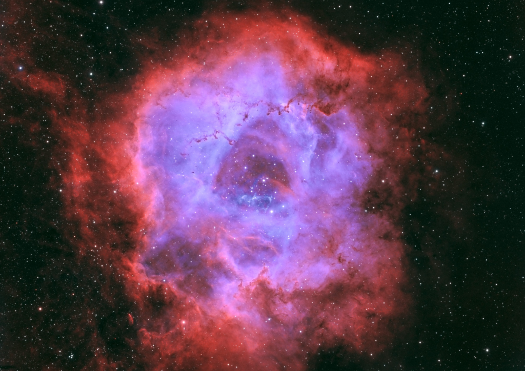 Der Rosettennebel ist eine sogenannte H-II Region in der Einhorn Konstellation in einer Entfernung von ca. 5000 Lichtjahren von der Erde.